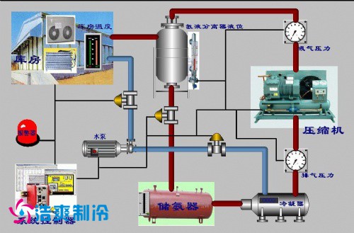 制冷系統(tǒng)是實(shí)現(xiàn)機(jī)械制冷所必須的機(jī)器、設(shè)備及連接這些機(jī)器、設(shè)備的管道、閥門(mén)、控制元件等所組成的封閉循環(huán)系統(tǒng)。氣調(diào)庫(kù)的制冷系統(tǒng)與普通冷庫(kù)的制冷系統(tǒng)基本相同。但氣調(diào)庫(kù)制冷系統(tǒng)具有更高的可靠性,更高的自動(dòng)化程度,并在果蔬氣調(diào)貯藏中長(zhǎng)時(shí)間維持所要求的庫(kù)內(nèi)溫度。一般采用氨制冷系統(tǒng)或氟利昂?jiǎn)渭?jí)壓縮直接膨脹供液制冷系統(tǒng)。